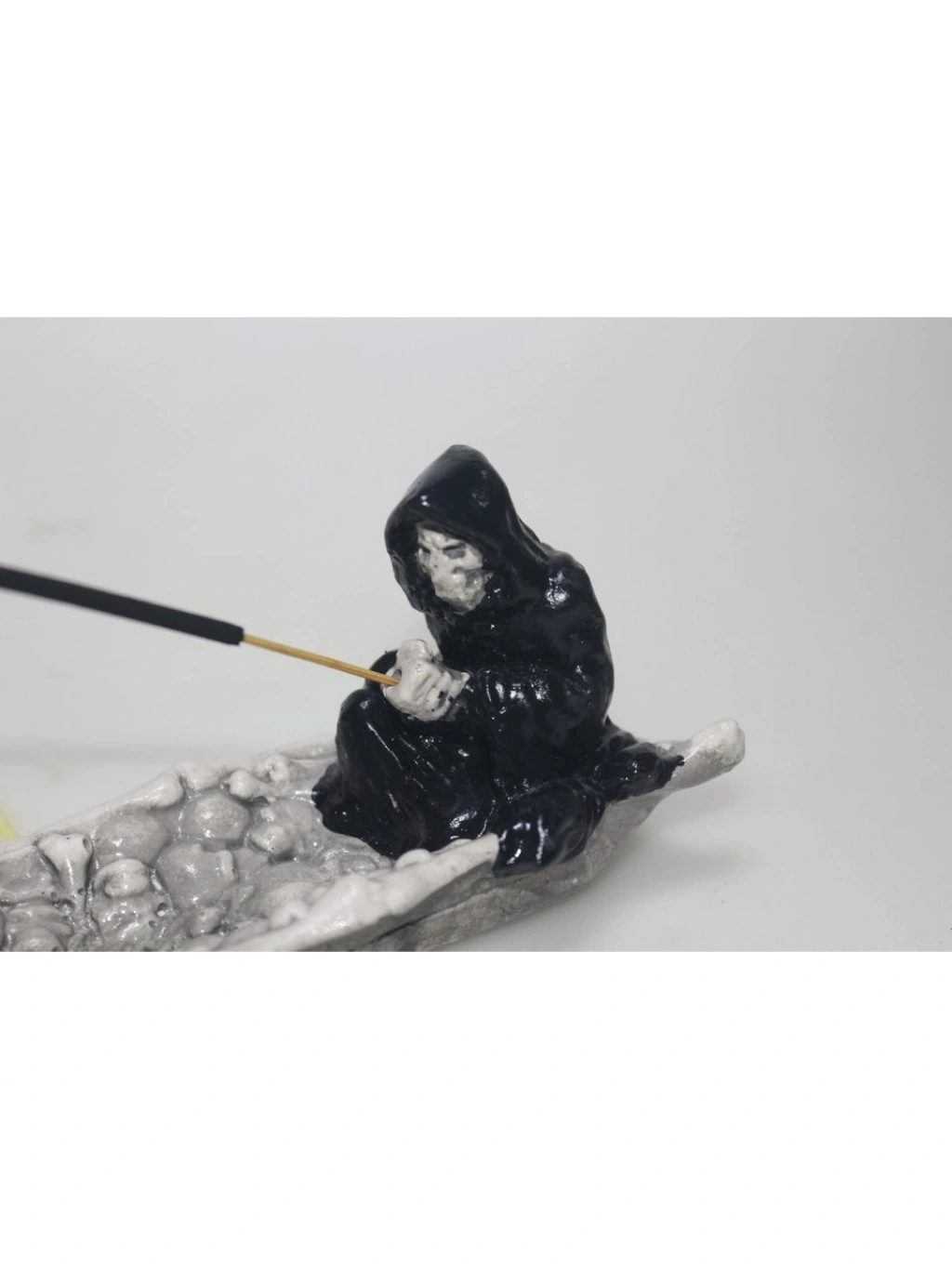 Azrail şeklindeki tasarımıyla dikkat çeken bu tütsülük, hem estetik hem de işlevsel bir aksesuar olarak öne çıkar Azrail çubuk tütsülük orijinal yapısı sayesinde doğal ve otantik bir görünüm sunar, dekoratif objeler arasında öne çıkar