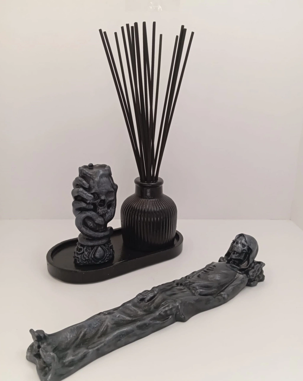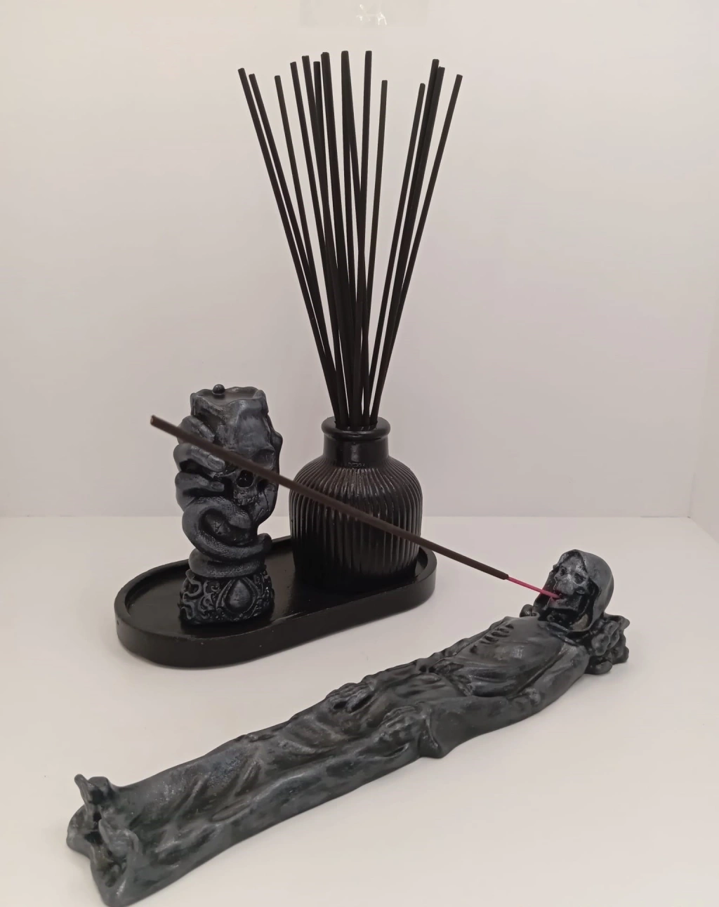Paket İçeriği: 1 adet çubuk tütsülük + vazo + kuru kafa tasarımlı biblo + tabak