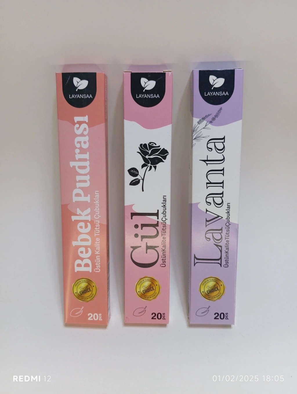 ÇUBUK TÜTSÜ 60 ADET (3 PAKET) LAVANTA-GÜL-BEBEK PUDRASI ODA KOKUSU