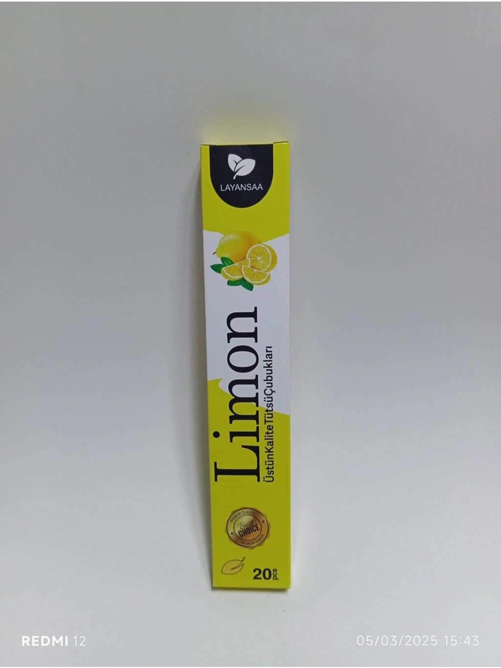 Çubuk Tütsü Doğanın Dinginliği: Çubuk Tütsü, doğanın huzur verici kokularından ilham alınarak tasarlanmıştır. Taze ve çiçeksi notası, evinizi saran huzur dolu bir atmosfer yaratır. Her bir tütsü, doğal malzemeler ve özenle seçilmiş esanslarla üretilmiştir, böylece uzun süreli bir tütsü keyfi sunar. Yüzyıllardır stresi azalttığı bilinir. Çubuk Tütsü, iç huzuru ve dinginliği teşvik eder. Bu tütsüler, yoğun bir günün ardından gevşemek ve rahatlamak için ideal bir seçenektir. Kaliteli Malzemeler, Uzun Süreli Kullanım: Her bir tütsü çubuğu, yüksek kaliteli malzemelerden üretilmiştir ve doğal esanslarla işlenmiştir. Bu sayede tütsüler, uzun süreli bir yanma süresi sunar ve evinizi sürekli olarak hoş bir kokuyla doldurur. Limon kokulu Çubuk tütsünün ucu ateş ile tutuşturulur. 5-10 saniye bekledikten sonra üfleyerek veya el ile hafifçe sallanır. Yanan alevli ateşin sönmesi ve sadece ucunda kor ateş kalması sağlanır. Limon kokulu tütsünün kendi cazibesinde tütmesi, tütsülemesi sağlanır.