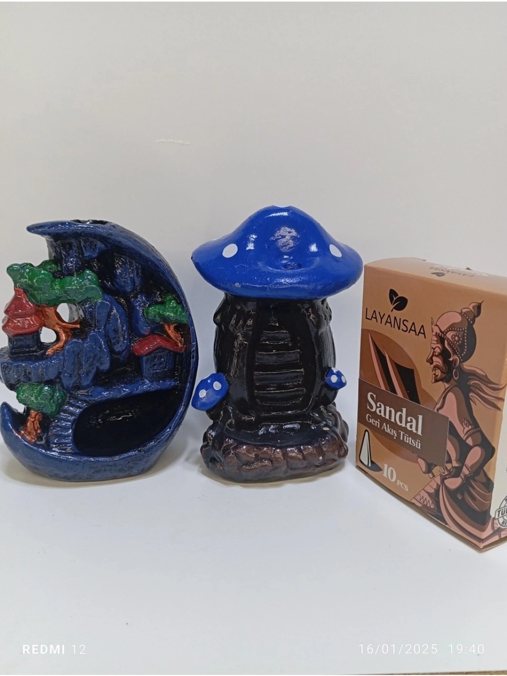 Mini Ay Mini Mantar Geri Akış Şelale Tütsülük Buhurdanlık 10 Adet Tütsü Hediyeli
