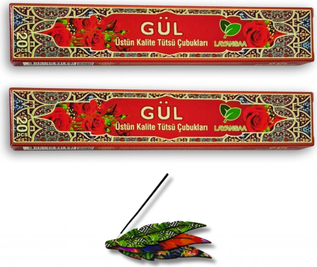Layansaa Çubuk Tütsü Gül 40 Adet 2 Paket + Tütsülük 1 Adet