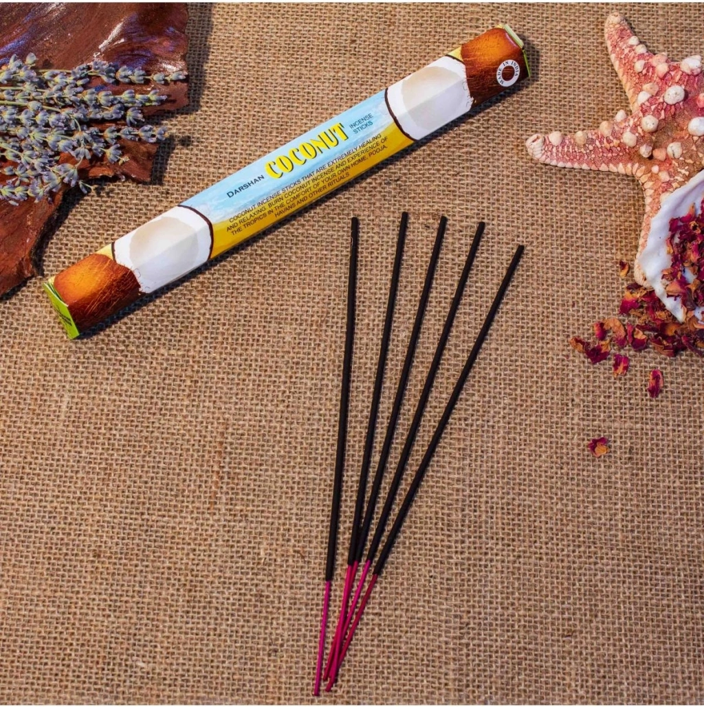 Darshan International Coconut (Hindistan Cevizi) Hexa 20'li Çubuk Tütsü (1 Saate Kadar Yanma Süresi)