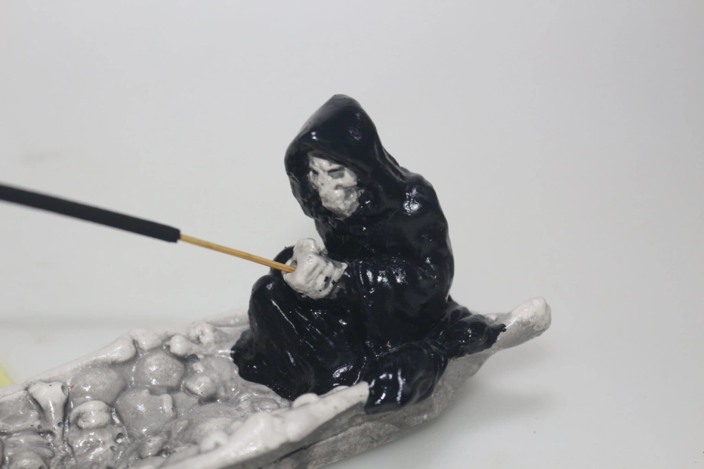 Azrail şeklindeki tasarımıyla dikkat çeken bu tütsülük, hem estetik hem de işlevsel bir aksesuar olarak öne çıkar azrail çubuk tütsülük yapısı sayesinde doğal ve otantik bir görünüm sunar, dekoratif objeler arasında öne çıkar