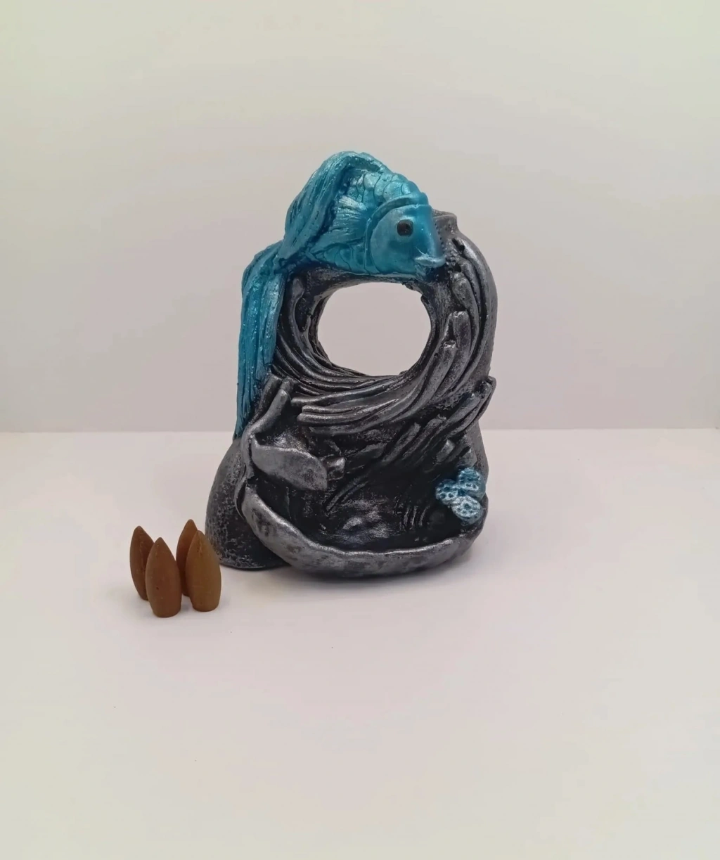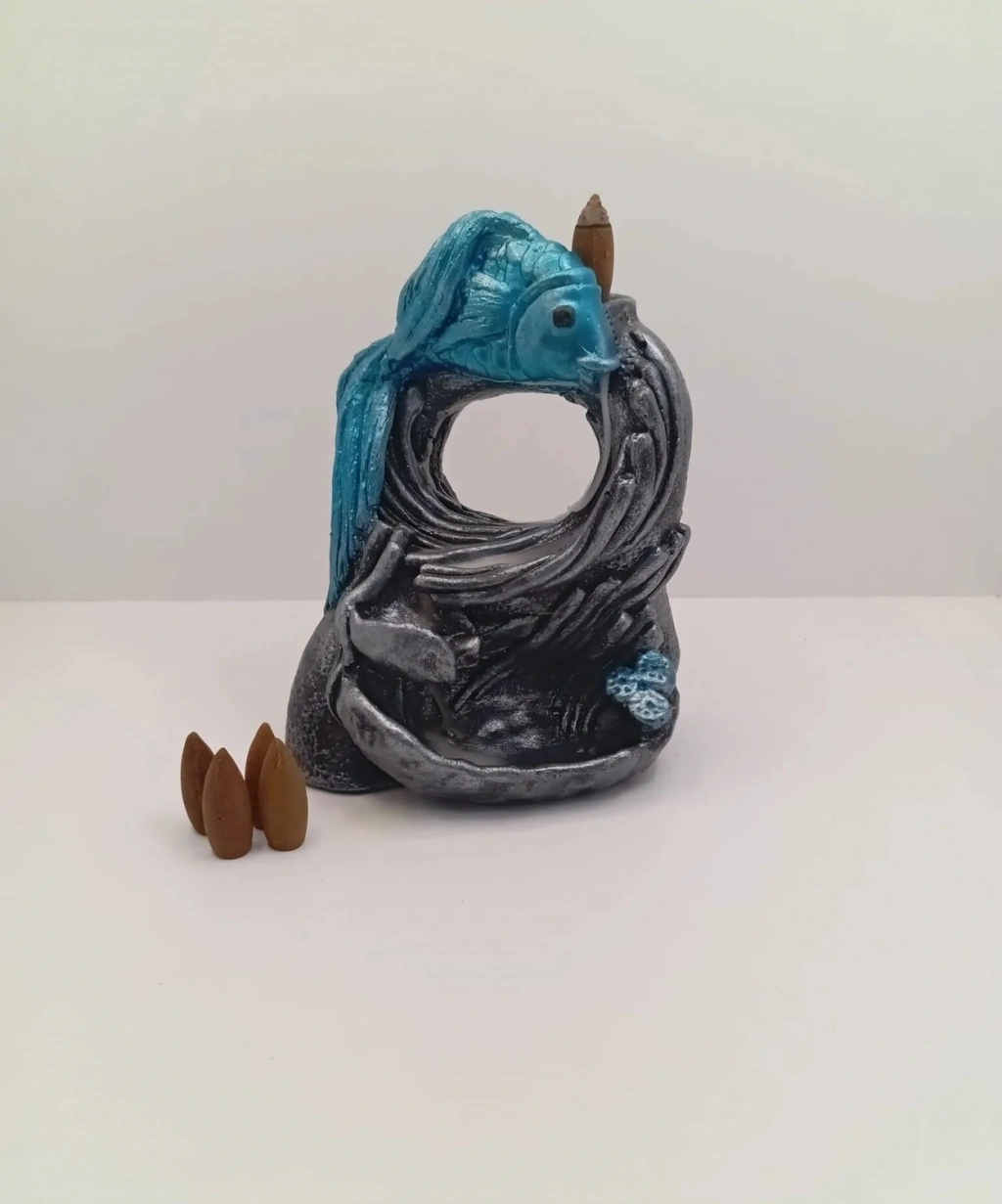 Balık şelale geri akıştütsülük ev dekorasyonunuza zarif bir dokunuş katarak odanızı süsler. Bu tasarım, estetik açıdan çekici bir görünüme sahiptir ve aynı zamanda tütsülerinizi yakmak için pratik bir araçtır.