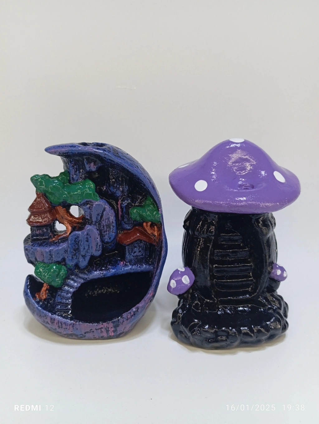 mini ay ve mini mantar geri akıştütsülük ev dekorasyonunuza zarif bir dokunuş katarak odanızı süsler. Bu tasarım, estetik açıdan çekici bir görünüme sahiptir ve aynı zamanda tütsülerinizi yakmak için pratik bir araçtır.